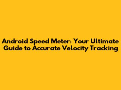 Understanding the Android Speed Meter: The Basics