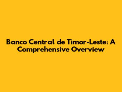Banco Central De Timor-Leste: A Comprehensive Overview