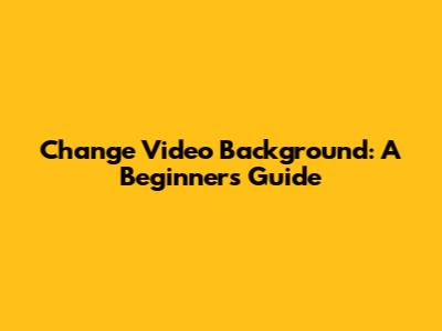 Change Video Background: A Beginner's Guide