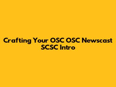 Crafting Your OSC OSC Newscast SCSC Intro