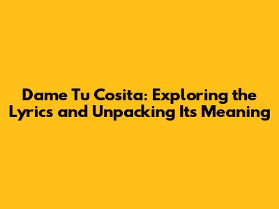 Dame Tu Cosita: Unveiling The Lyrics And Meaning