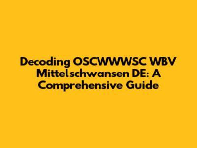 Decoding OSCWWWSC WBV Mittelschwansen DE: A Comprehensive Guide