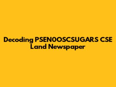 Decoding PSEN0OSCSUGARS CSE Land Newspaper