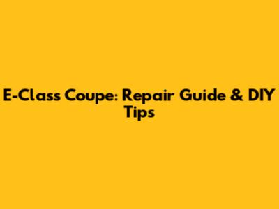 E-Class Coupe: Repair Guide & DIY Tips