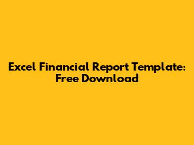 Excel Financial Report Template: Free Download