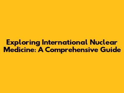 Exploring International Nuclear Medicine: A Comprehensive Guide