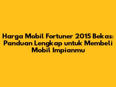 Harga mobil Fortuner 2015 bekas memang bervariasi, tetapi dengan riset yang cermat dan tips yang tepat, kamu bisa mendapatkan unit berkualitas dengan harga yang sesuai. Jangan terburu-buru dalam mengambil keputusan dan selalu lakukan pengecekan secara menyeluruh sebelum membeli. Dengan perawatan yang baik, Fortuner 2015 bekasmu akan tetap prima dan menjadi teman setia dalam setiap perjalanan.