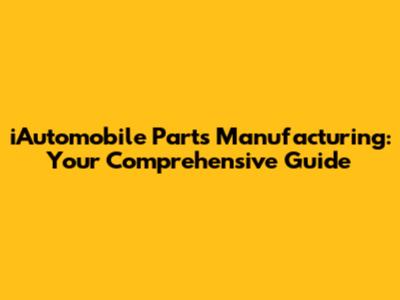 IAutomobile Parts Manufacturing: Your Comprehensive Guide