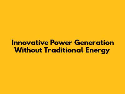 Innovative Power Generation Without Traditional Energy