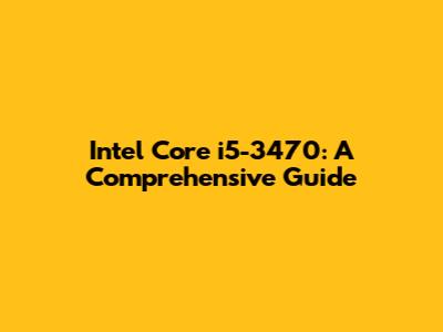 Intel Core I5-3470: A Comprehensive Guide