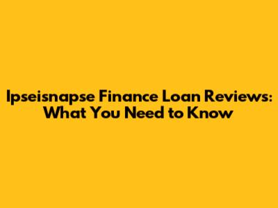 Ipseisnapse Finance Loans: Reviews, Rates, And Application