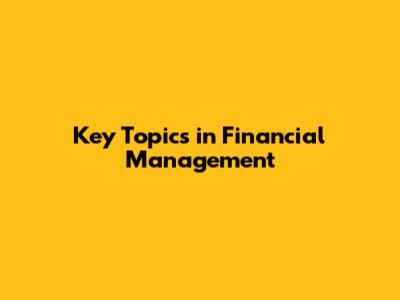 Key Topics In Financial Management
