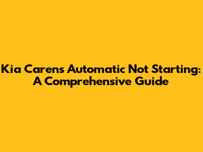 Kia Carens Automatic Won't Start: Troubleshooting Guide