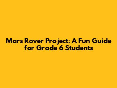 Mars Rover Project: A Fun Guide For Grade 6 Students