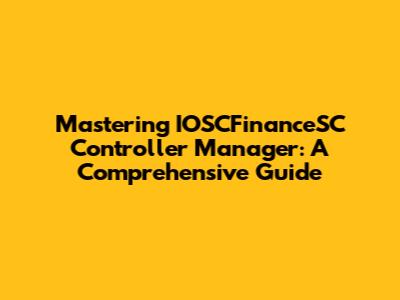 Mastering IOSCFinanceSC Controller Manager: A Comprehensive Guide