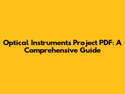 Optical Instruments Project PDF: Guide & Examples