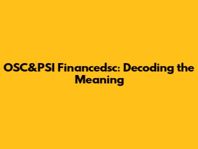 OSC&PSI Financedsc: What Does It Mean?