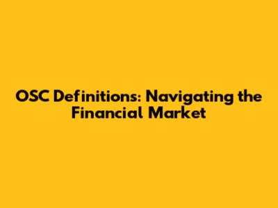 OSC Definitions: Navigating The Financial Market