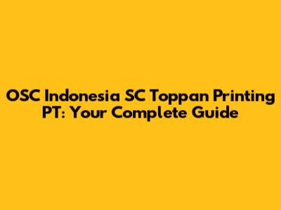 OSC Indonesia SC Toppan Printing PT: Your Complete Guide