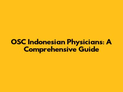 OSC Indonesian Physicians: A Comprehensive Guide