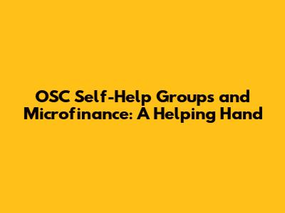 OSC Self-Help Groups And Microfinance: A Helping Hand