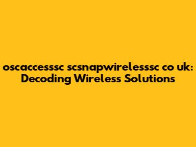 Oscaccesssc Scsnapwirelesssc Co Uk: Unveiling Wireless Solutions
