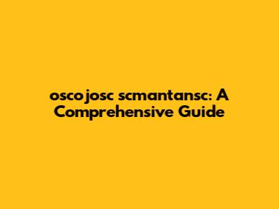 Oscojosc Scmantansc: A Comprehensive Guide