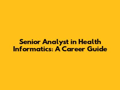 Senior Analyst In Health Informatics: A Career Guide