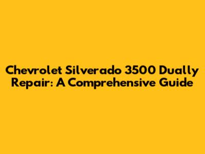 Silverado 3500 Dually: Your Go-To Repair Guide