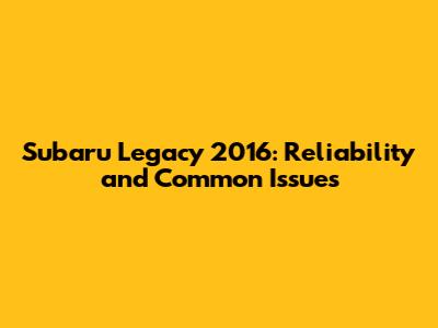 Subaru Legacy 2016: Reliability And Common Issues