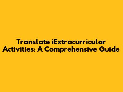 Translate IExtracurricular Activities: A Comprehensive Guide