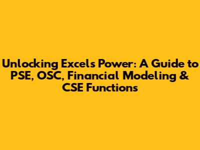 Unlocking Excel's Power: A Guide To PSE, OSC, Financial Modeling & CSE Functions