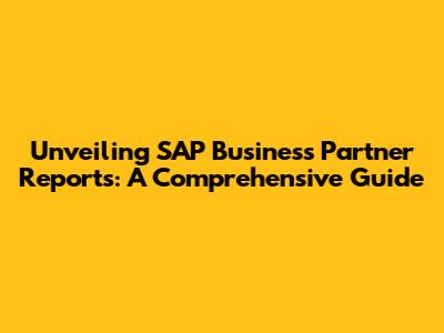 Unveiling SAP Business Partner Reports: A Comprehensive Guide